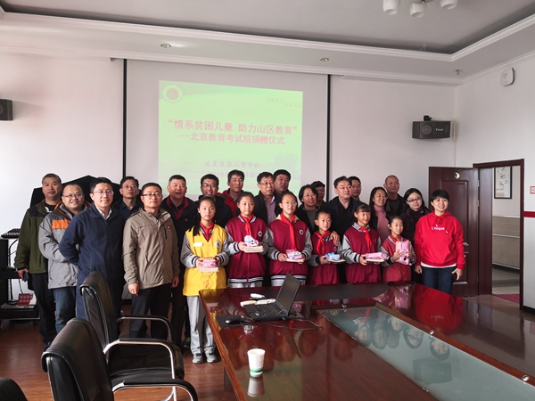 张山营学校位于延庆区西北张山营镇,北邻我市第二高峰海坨山,2012年成为九年一贯制寄宿学校,学生400余名。党员干部参观了宽敞明亮的校舍,聆听了学校领导的发言。当党员干部把学习生活用品送到学生手中时,他们露出质朴纯真的笑脸,用稚嫩清脆的声音表示:一定不辜负北京教育考试院叔叔阿姨的爱心善举,要用优异成绩回报关爱!大家勉励受助学生努力学习,开阔眼界,直面困难,勤奋拼搏,掌握更多的本领,以后为社会、为家乡作出贡献,希望同学们的名字将来都会出现在考试院的招生录取名册上。