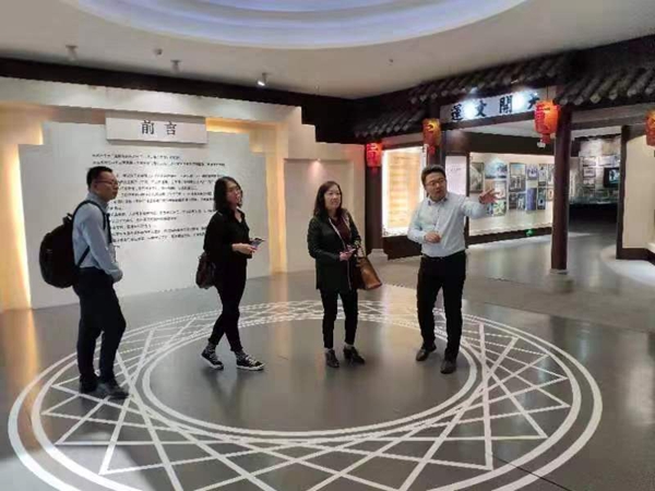 广东讯飞启明副总经理李权、安徽合肥讯飞启明部门经理罗士伟陪同调研小组参观考试文化博物馆,讲解了科举考试的流程和标准,讲述了从民间收集科举实物的故事,介绍了考试作弊设备以及先进的无线屏蔽仪器,详细演示了人工智能在虚拟主播、语音合成、文图转化等方面的应用。
