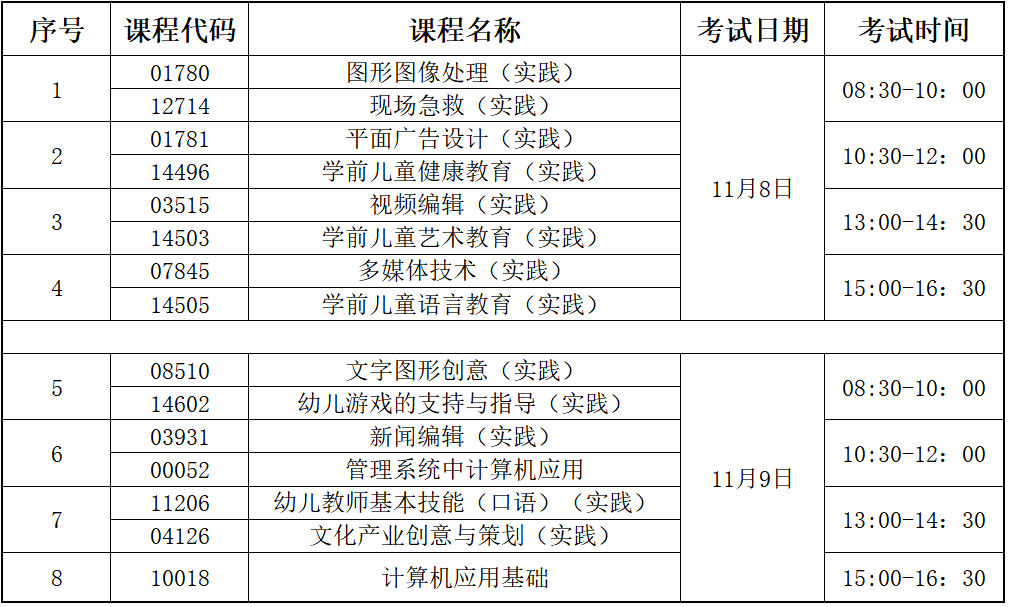 2025年下半年由北京北大方正软件职业技术学院主考的高等教育自学考试实践类课程考核共有15门考试科目,经我办研究决定,计划定于11月8日、11月9日举行考试。现将具体考试计划安排如下: